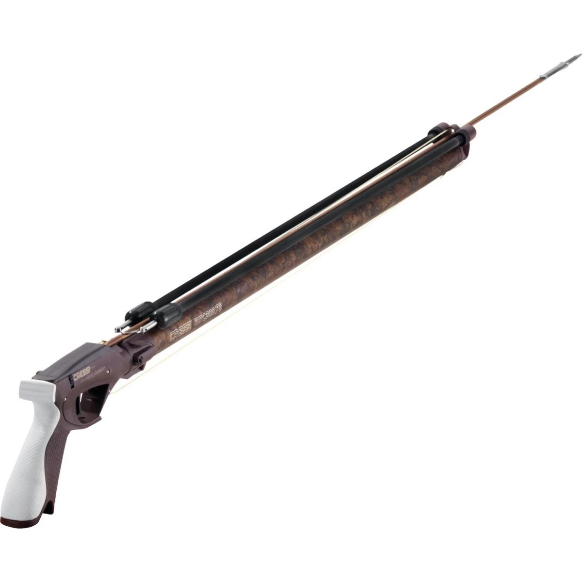 En seriøs jagt harpun fra Cressi. Moicano er en gun alle seriøse uv jægere har i bilen, for den er virkelig allround. Store havørreder, bars, fladfisk, torsk you name it. Den er kraftig og med en elastik på hele 16mm får man virkelig et hurtigt og præcist skud. Closed Muzzle betyder at snuden på harpunen er designet så spydet går gennem et kompakt øje. Det sikrer en harpun der er lettere at lade, selv i mørke på natdykkene. Moicano er en ny klassiker, som alle vores kudner elsker fordi den er kraftig men samme tid let at svømme med men også let at lade. Den kan skyde det hele, og gør det hurtigt og godt. Og så er det altid godt med camo. Spydet er 6mm og holder til noget. Håndtaget er ergonomisk og har en lille pad der hjælper til at du kan lade på brystkassen. Multer, havørred og laks, torsk, fladfisk mm. Der er intet du ikke kan skyde med en moicano.