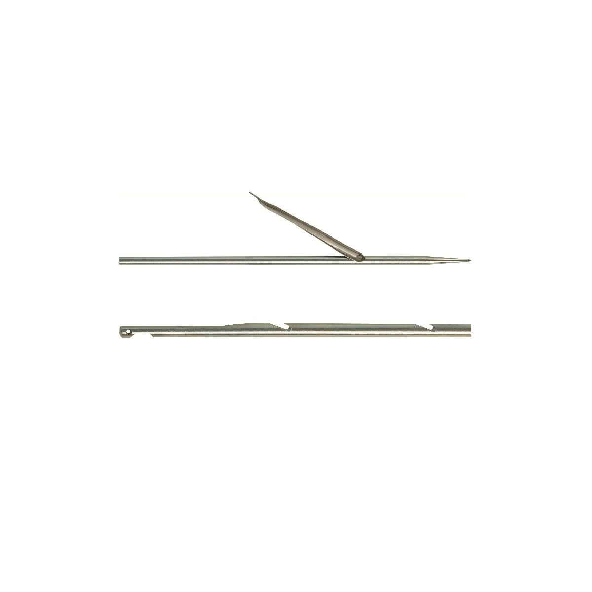 Stål spyd med fast spids, der passer til wisbine systemet. Spydet har modhager monteret, så fisken bliver sidden på spydet når den rammes. Det er vigtigt altid at have ekstra spyd med, hvis du skulle midste et, er harpunen ikke meget værd.