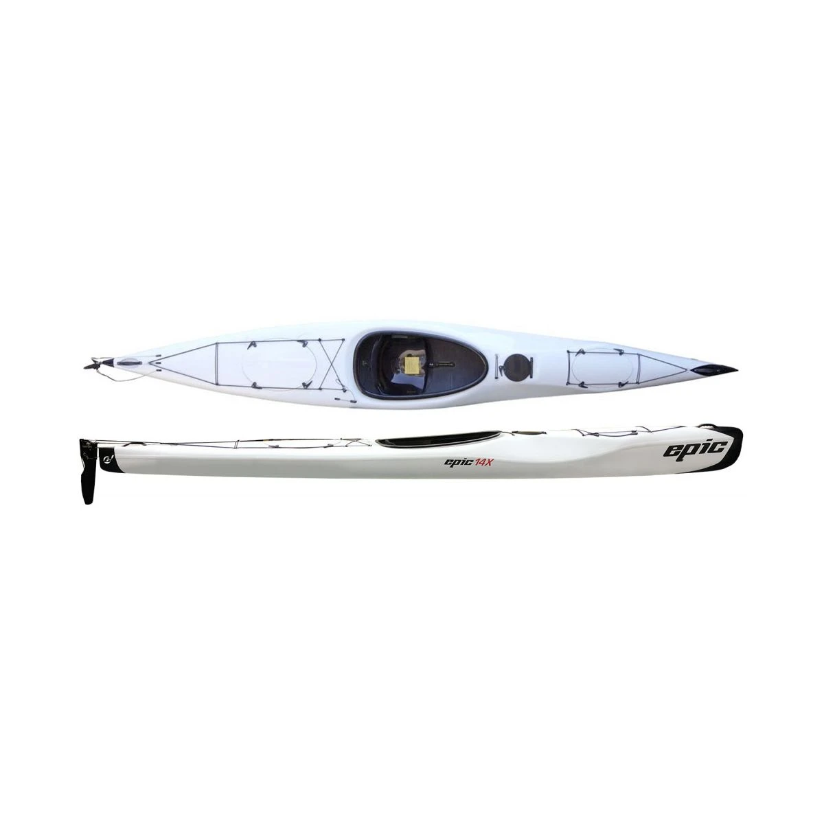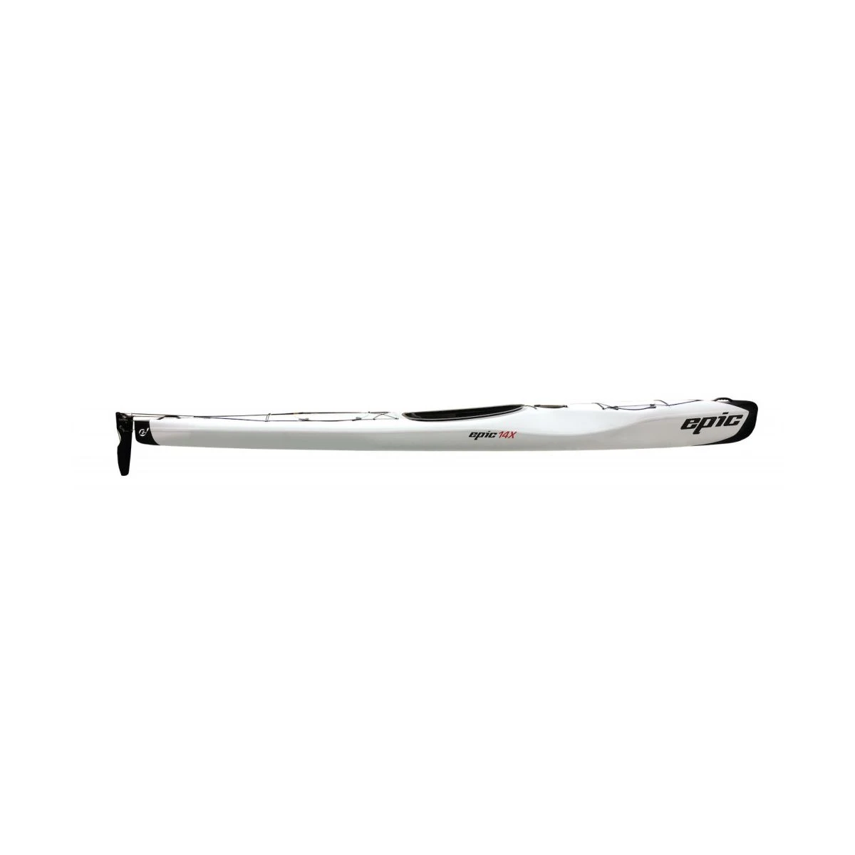 Skroget er baseret på V5 surfski i composit, som har vist sig fantastisk sjov og nem i bølger og med et virkelig godt glid gennem vandet. Den relativt korte længde gør den virkelig manøvrerbar og nem at håndtere. Teoretisk set, så har en lang kajak en højere tophastighed end en kort kajak. Men en kort kajak kan faktisk godt have en mindre våd overflade end en lang kajak, hvilket giver mindre vandmodstand ved lavere hastigheder. Epic 14X er et godt eksempel på en kajak, der har et virkelig godt glid gennem vandet ved almindelig “tur-hastighed”, men som selvfølgelig har en lidt lavere tophastighed i forhold til f.eks. en Epic 18XS, som både er smallere og 1,1 meter længere. Men du vil blive overrasket over, hvor lille hastighedsforskellen.