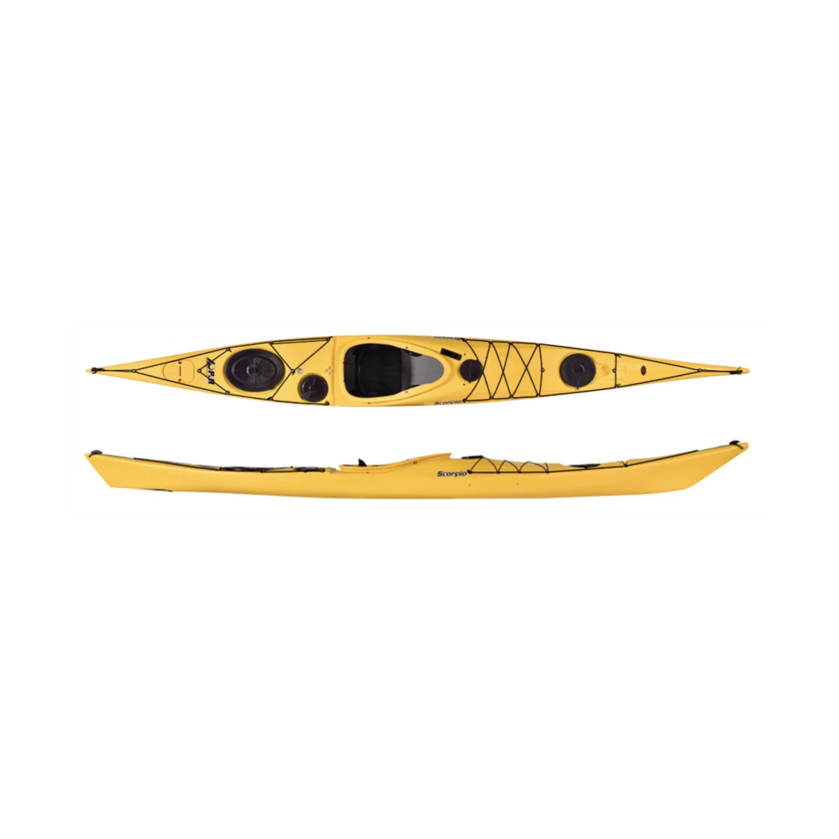 Scorpio er P&H’s topmodel i havkajak i polyethylen. Designmæssigt er den baseret på bestselleren Cetus og har gennem de senere år bevist sit værd på vandet som en rigtig hurtig og sødygtig kajak. Den fungerer perfekt både på en aftentur i stille vejr og i hårdt vejr på ferietur med fuld oppakning. Siddekomforten er helt i top med masser af justeringsmuligheder og polstring inklusiv justerbare hoftepuder og en polstret rygstøtte, der nemt kan finjusteres, mens du sidder i kajakken. Nu er den kommet i en ny opdateret version 2, hvor især dækket er ændret, mens der kun er lavet små justeringer af bunden. Når noget fungerer rigtig godt, så skal man selvfølgelig være forsigtig med at ændre det for meget! Bagdækket og bagkanten af cockpittet er sænket, så det er nemmere at læne sig tilbage og lave grønlændervendinger og det er nemmere at entre kajakken fra vandet. Cockpittet er flyttet en anelse tilbage for at forbedre afbalanceringen i sidevind, cockpitkanten er ændret for at forbedre siddekomforten, forlugen er tiltet lidt mod cockpittet for at lette adgangen og afvandingen omkring lugerne er forbedret. Denne model er lavet i CoreLiteX, som er en ny type plast-materiale, som er stivere, mere slidstærk og utrolig nok lettere end de “normale” plastmaterialer, som ellers bruges til kajakkerne. Det betyder, at den er utrolig slid- og slagstærk, mere formstabil i vandet og lettere at bære på land. Vægtbesparelsen er omkring 1-2 kg for denne kajak, hvilket godt kan mærkes, især hvis kajakken f.eks. skal løftes op på taget af en bil. Scorpio er desuden forberedt til montering af en virkelig effektiv sejlrig. Hvorfor ikke udnytte vindkraften, når du er ude at ro? Det er faktisk både nemt og virkelig sjovt, og du bestemmer jo selv, hvornår og hvor meget du vil ro, og hvor meget du vil bruge sejlet. Med sejl kan du nemt øge din hastighed med 50% eller mere under de rigtige vejrforhold. Scorpio overrasker ved at være utrolig hurtig uden at være ustabil. Den er også meget nem at styre ved at kante den. Ligesom Cetus, så har P&H moderet “banan-formen” og de meget høje ender, som mange engelske havkajakker har. Det gør Scorpio mindre sidevindsfølsom og giver en længere vandlinie, hvilket gør den hurtigere og mere behagelig at ro. Bunden er i princippet baseret på en knækspant facon, hvilket giver stabilitet og god kantning, men de skarpe kanter er afrundede og gjort bløde, hvilket igen mindsker den våde overflade og fremmer hastigheden, uden at du mister nævneværdig stabilitet eller styreevne ved kantning. Scorpio er topmodellen i P&H’s program af polyæthylen kajakker. Den har fuldt fortjent overtaget Capella’en plads som den bedst sælgende af deres kajakker. Den har fået et utal af fantastiske anmeldelser i diverse kajakblade og er helt sikkert værd at prøve, inden du beslutter dit næste kajakkøb. Uden oppakning så er Scorpio LV bedst til roere under 75-80 kg. Er du tungere, så vil Scorpio MV eller HV formentlig passe dig bedre. Scorpio er udstyret med det nye og patenterede Skudder-system (Skeg + Rudder = Skudder), som er en finne, som giver kajakken retningsstabilitet, men som også fungerer som ror, når den er sænket helt ned. Du får således det bedste fra 2 verdener: Den enkle styring bare med finne og den ekstra hjælp med styringen, som et ror kan give under vanskelig forhold. Roret er i øvrigt langt mere effektivt end et normalt ror helt ude på bagenden af kajakken, som på de fleste havkajakker med ror. Det skyldes, at roret er rykket ind under kajakken, hvor det har meget større virkningsgrad. Samtidig bliver kajakken visuelt flottere uden et ror på bagenden og bagenden bliver mindre vindfølsom. Roret har fået virkelig gode anmeldelser og vores kunder har også været begejstrede – du bliver overrasket over, hvor godt den styrer! Udstyret med: 4 luger, polstret rygstøtte og sæde, justerbare hoftepuder, justerbare lårstøtter, dæksliner, bærehåndtag, Skudder finne- og rorsystem, diverse dækfittings m.m.
