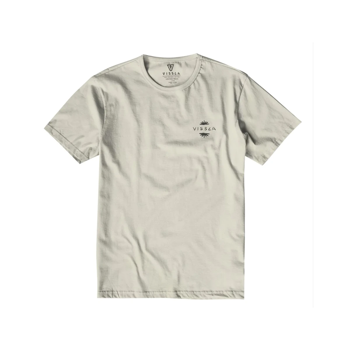 Above And Below Tee. Det er en supernatural 30 single-t-shirt lavet i vores sidesømmede moderne pasform med 100 % GOTS-certificeret økologisk bomuld. Vintage vasket for en blød fornemmelse og et worn-in udseende. Indeholder Visslas ikoniske flaglabel med et superblødt skærmprint.